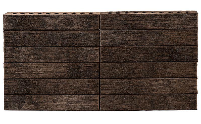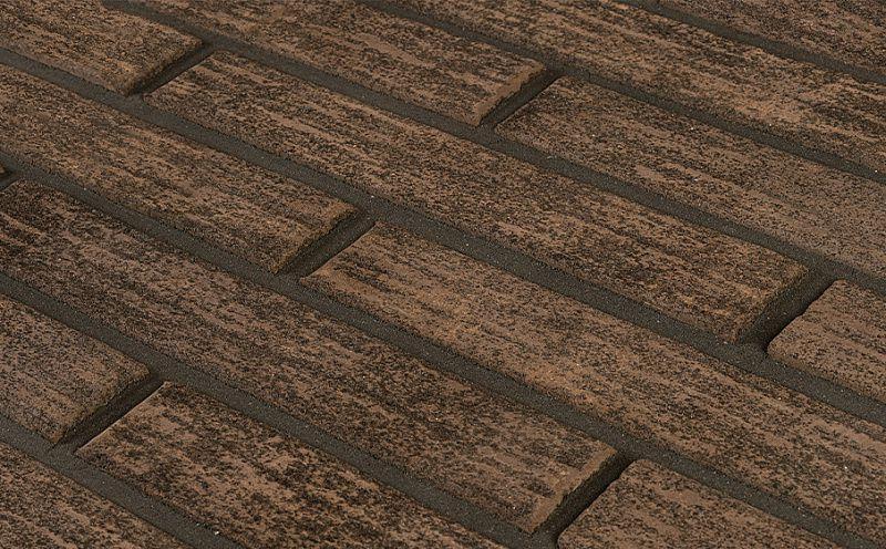 Лицевая поверхность имеет уникальный рельеф, который дополнительно визуально удлиняет кирпич. Также в производстве используется технология торкретирования — нанесение на поверхность декоративного покрытия.