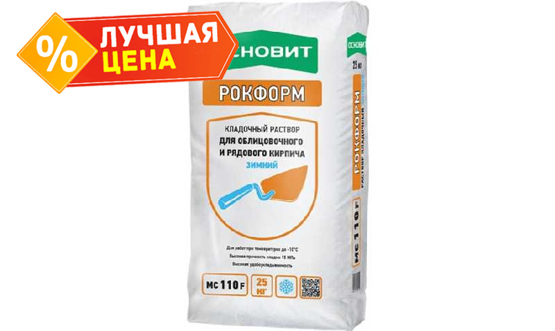 Кладочный раствор Основит Рокформ МС110 F зимний предназначен для кладки стен из рядового кирпича при температуре окружающей среды и основания от -10 до +10°С.